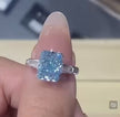希少なファンシーインテンスブルーのラボグロウンダイヤモンドを、透明感あふれるレクタンギュラーカットに仕上げました。
